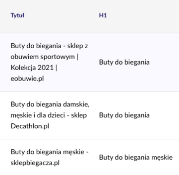 Porównasz treść meta tytułów i H1 konkurencyjnych artykułów,