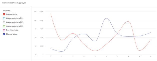 między pozycją strony w TOP 10 a liczbą nagłówków, długością tekstu i treścią tytułów