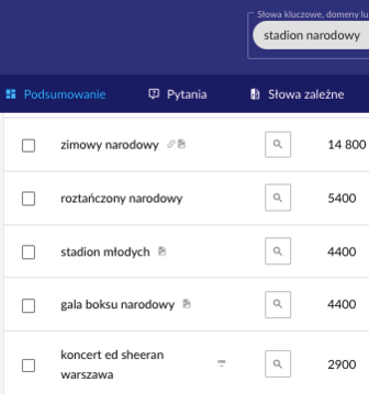 Poznasz podpowiedzi fraz generowanych automatycznie na podstawie zapytań użytkowników. To dodatkowe źrodło słów kluczowych na Twoją stronę.