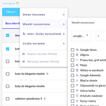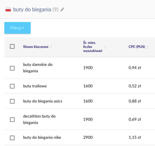 Lista fraz, którą otrzymasz, może zawierać tysiące fraz. Skorzystaj z intuicyjnych filtrów i zawęź wyniki do swoich potrzeb.