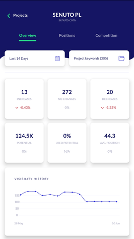 Senuto mobile app assures you a constant access to the overview of your Google ranking!