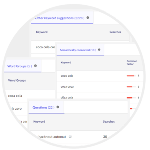 The reports contain thousands of keywords. Intuitive filters help you to adjust the list to your needs