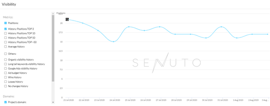 Senuto je výkonný nástroj na analýzu dohľadateľnosti v Google vyhľadávaní. Viditeľnosť svojej domény v TOP3/10/50 môžete rýchlo a ľahko skontrolovať v týždenných a denných reportoch. Oceňujem najmä veľkú databázu neustále sledovaných kľúčových slov, prezentáciu výsledkov v prehľadnom grafe a možnosť porovnávať viditeľnosť svojej domény s konkurenciou.