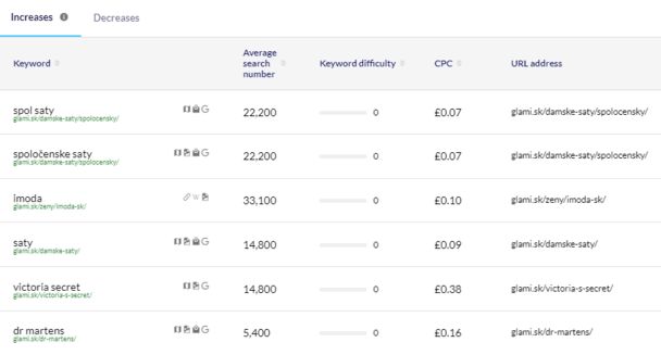 Dozvíte se, díky kterým frázím vybraná stránka roste případně klesá na Google.