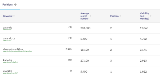 Důkladně zanalyzujete všechna klíčová slova a pozice, na kterých se zadaná doména zobrazuje na Google.